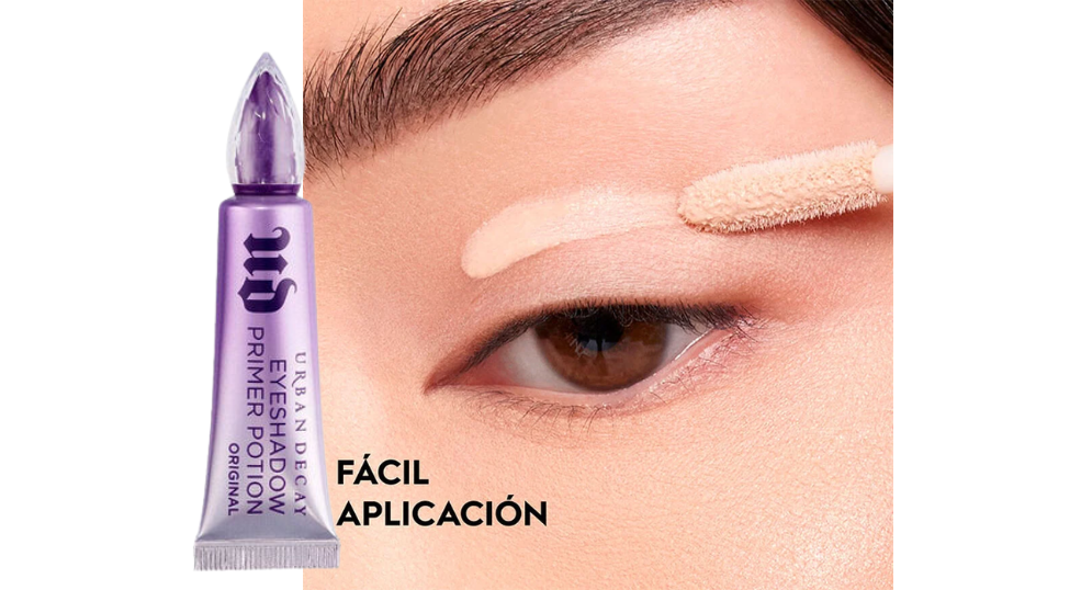 - Prebase de párpados: evita que la sombra se acumule en los pliegues.