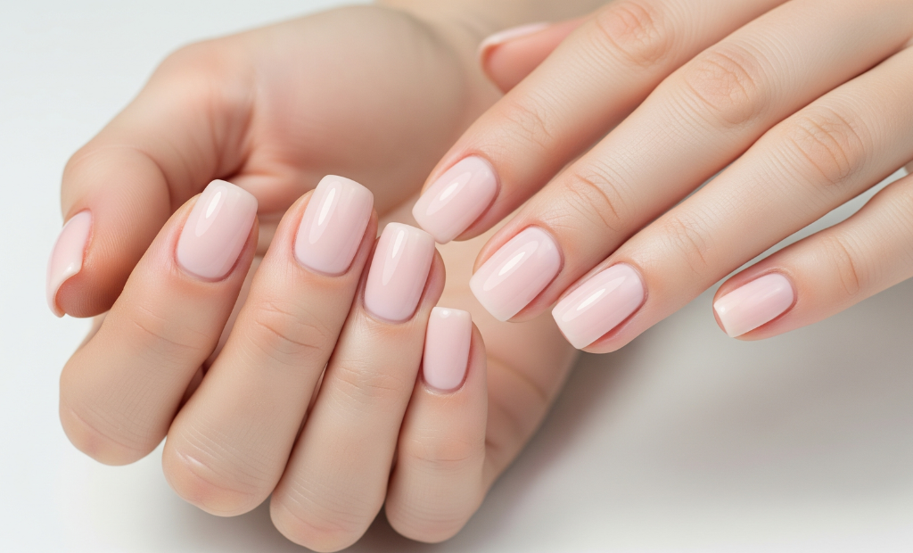 Los tonos más populares para las soap nails son los rosados lechosos, blanco translúcido, nude muy clarito y beige suave. La clave está en que el color no sea demasiado pigmentado ni opaco. Buscamos ese efecto “agua con unas gotitas de color”.
